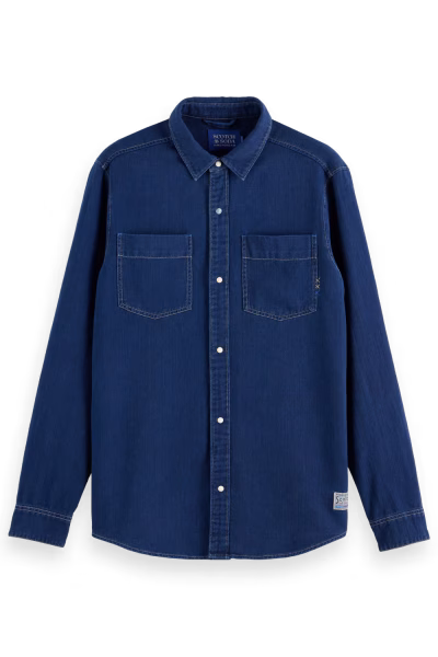 Chemise délavée en sergé indigo de qualité supérieure, coupe standard