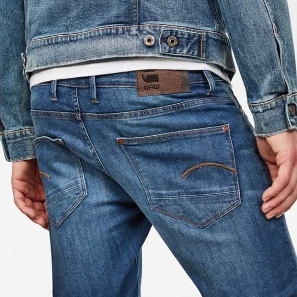 Le jean Revend Skinny arbore une coupe skinny. Une bande en cuir authentique est cousue au moyen de coutures épaisses sur les poches arrière. Des rivets en métal bicolore viennent renforcer les coins des poches.