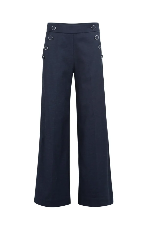 Pantalon taille haute, coupe large, boutons en finition